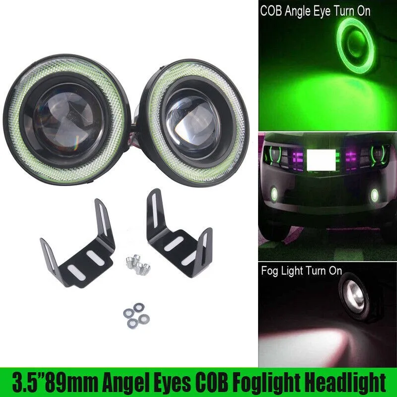 COB Fog Light DRL Lamp Green Halo Ring Projector SUV Truck 2pcs Set 3.5 Inch