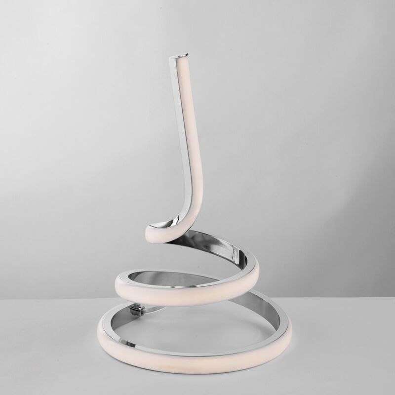 Collezione Nodo DESIGN MODERNO E CONTEMPORANEO Lumetto moderno in metallo e alluminio verniciato cromo lucido con led integrato. Riccioli di luce led che caratterizzeranno in modo unico e distintivo ogni ambiente. Nuovo concetto di illuminazione dal design distintivo per arredare o rinnovare ogni ambiente di casa o di lavoro. Design, efficienza e altà qualità per questa lampada da tavolo.
