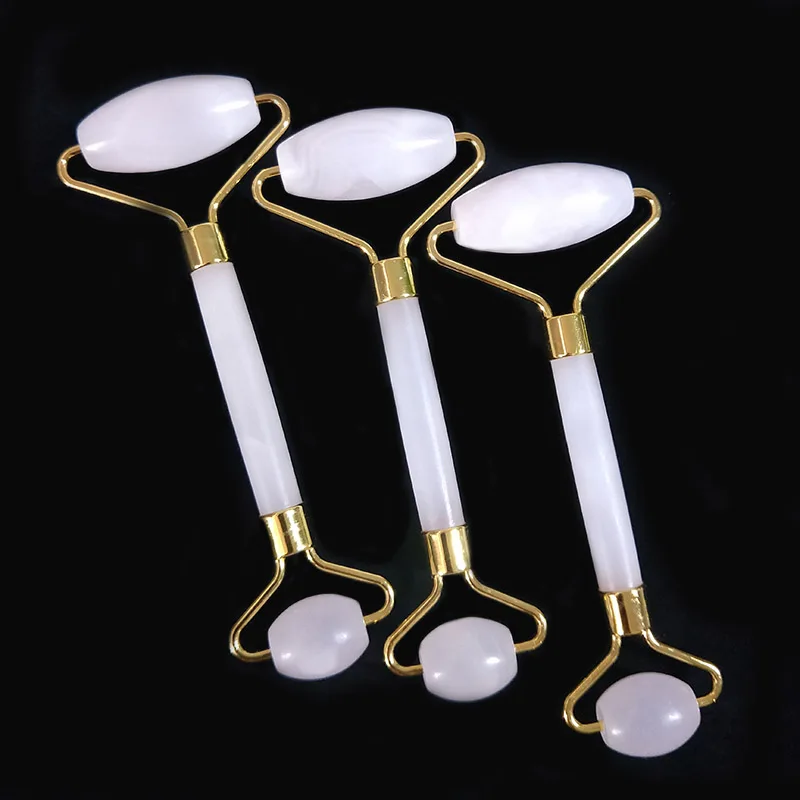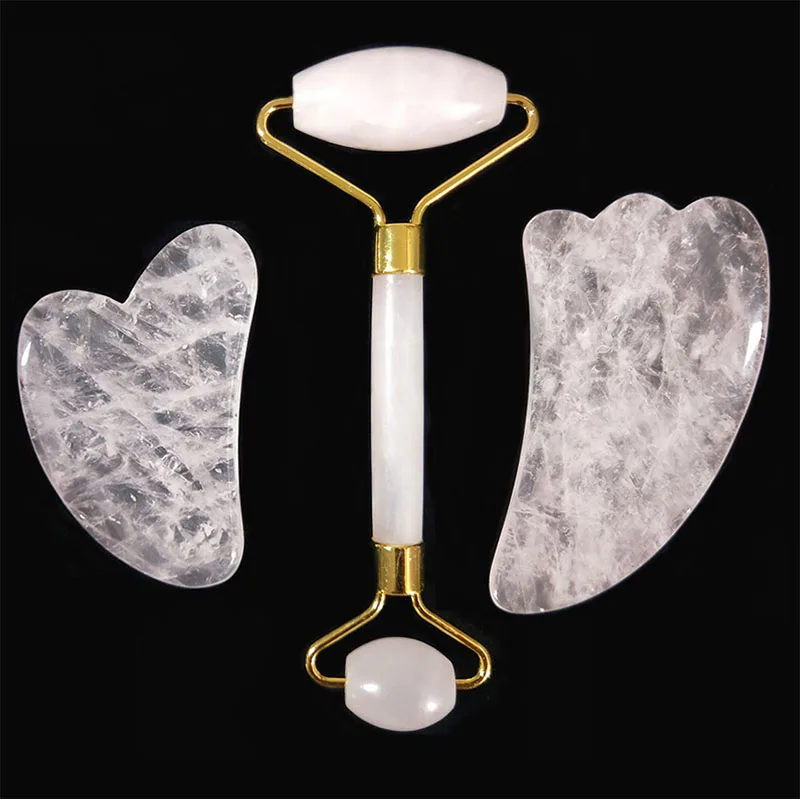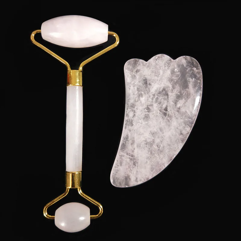 Light Pink Rose Quartz Jade Roller Slimming Face Massager Facial Massage Crystal Roller Natural Stone Scraper Guasha Board Set