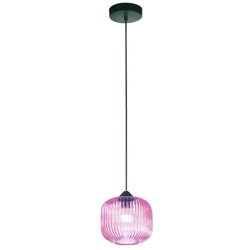 Collezione Plisse Sm COLORA LA TUA STANZA CON STILE Sospensione con struttura in ferro laccato nero con cavo elettrico regolabile e diffusore in vetro soffiato rosa con rigatura in rilievo 1 luce . Prodotto 100% Made in Italy