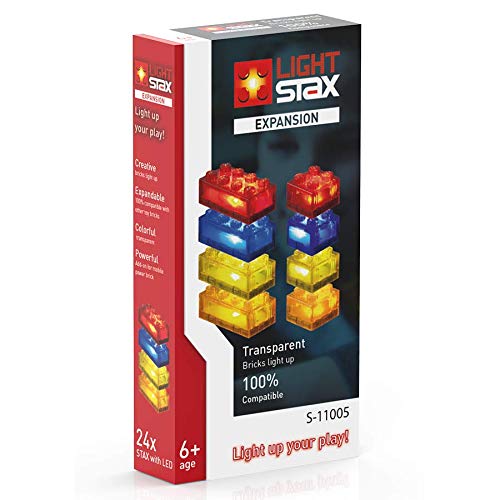 Light STAX Expansion, compatibile con il sistema STAX e tutti i marchi noti di mattoni, 24 pietre aggiuntive (rosso trasparente, giallo, blu e arancione).