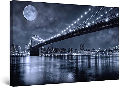 Eco Light Wall Art Quadro su Tela Brooklyn Bridge, Quadri Moderni Astratti Stampe Camere da Letto 60 x 90 cm e SPA collage set di 4