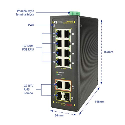 LIGHTEM 10/100M Switch Ethernet 10 Porte Poe Industriale 8x 1G 100M POE RJ45 e 2x 1000M RJ45/SFP Combo