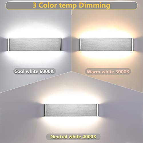 Lightess Applique da Parete Dimmerabili 3 Temperature di Colore LED 18W 40CM Interno Moderno Lampada da Parete Interni Luce in Alluminio per Camera da Letto, Soggiorno, Corridoio, Scale, Argento