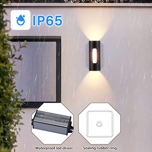 Lightess 18W Applique da Parete Esterno Lampada da Parete Esterni Impermeabile IP65 Lampada LED Moderna Lampada Muro Interno in Alluminio Luce per Giardino, Portico, Terrazza, Nero, Bianco Caldo 3000K
