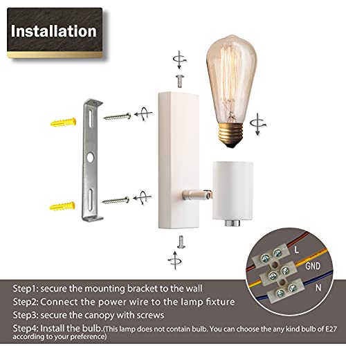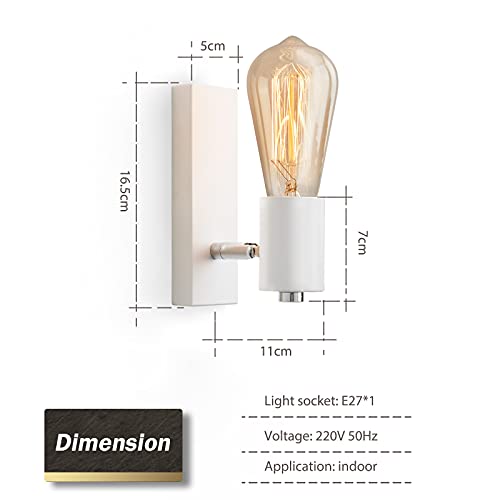 Lightess Applique da Parete Interno Vintage, Lampada da Parete Orientabile in Metallo Bianco, Muro Industriale Lampadina E27 Illuminazione Regolabile e Rotante per Soggiorno, Faretto, Entrata, Scale