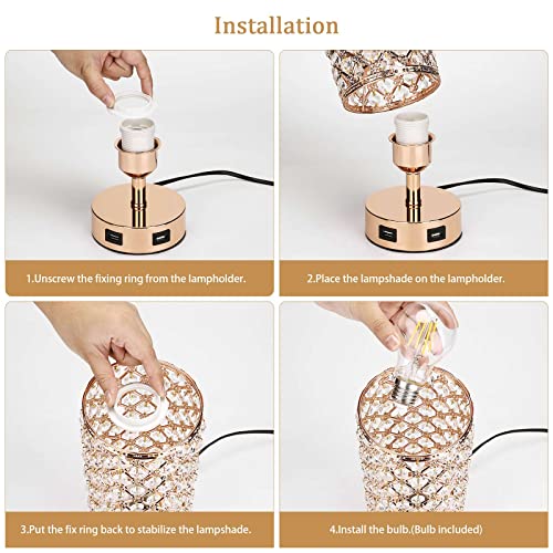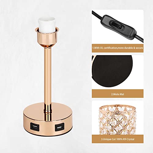 Lightess Lampada da Comodino in cristallo, Touch Controllo Pieno Lampada da Tavolo con Porte di Ricarica USB, Dimmerabile Lampada da Tavolo in Cristallo, oro, per Camera Soggiorno (Lampadina Inclusa)