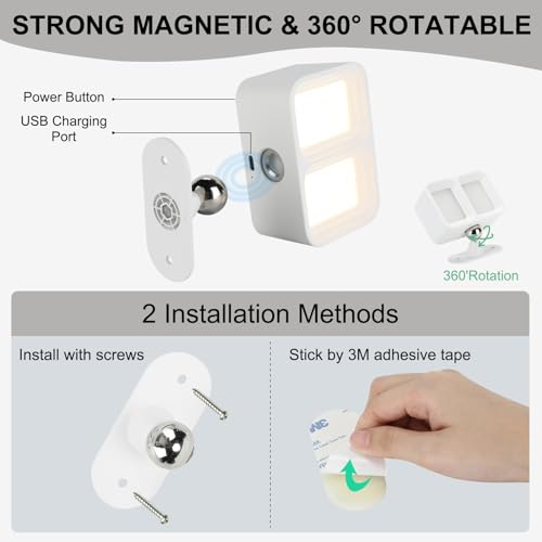 【Illuminazione a 360° e ricarica rimovibile】La sfera magnetica dell'applique ricaricabile può essere regolata liberamente per toccare l'angolo dell'applique in base all'angolo desiderato;