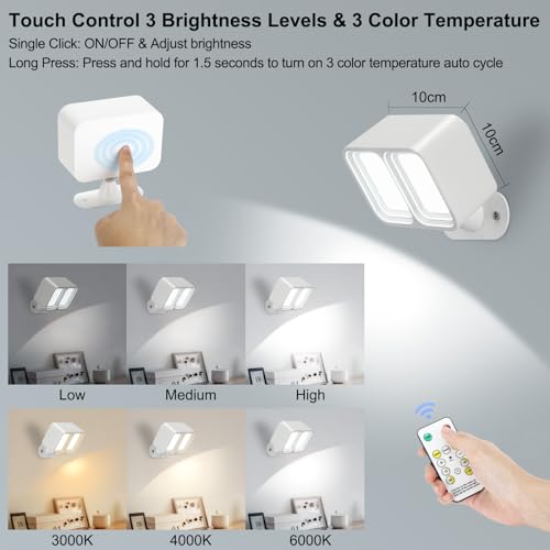 【3 temperature di colore e 3 livelli di luminosità】La nostra luce per parete infrange la limitazione che altre lampade da muro hanno una sola temperatura di colore e una luminosità non regolabile. Questa lampada a batteria può cambiare tre temperature di colore toccando l'interruttore: bianco - naturale - luce calda;
