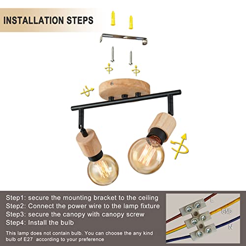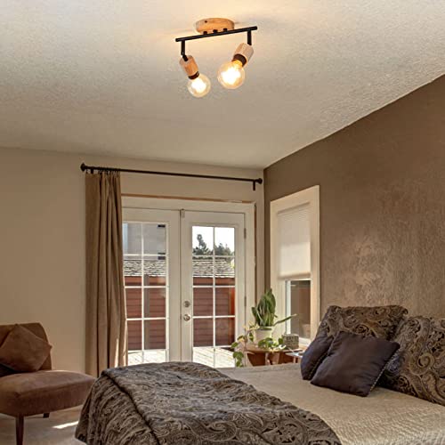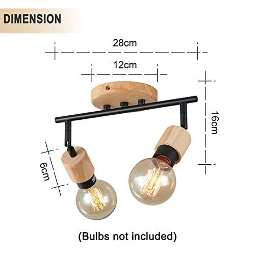 Lightess Lampada da Soffitto Legno Faretti a Spirale Plafoniera con 2 Faretti Orientabili Lampadario Industriale Luce Vintage 2 Luci Girevoli E27 per Sala da Pranzo, Soggiorno, Ristorante
