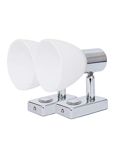 Lighteu, 2X 12V 3W D1 Faretto a soffitto/Parete, Finitura cromata, Luce di Lettura Girevole e Girevole con Interruttore a sfioramento Dimmerabile Luce Bianca/Blu Calda per Yacht, roulotte, Camper