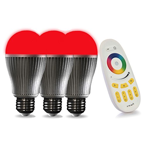LIGHTEU, 3x 9W E27 LED RGB Wireless Bulbo Originale MILIGHT Colore - Bianco caldo, dimmerabile, Telecomando, del cambiamento di colore della lampadina (Classe energetica A +)