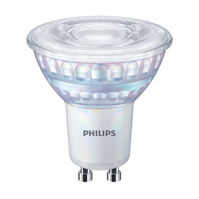 Spot LED dimmerabile Philips Con le lampade LED WarmGlow di Philips sperimenterai la luce in un modo completamente nuovo. Abbassa il livello di luce sui toni caldi delle lampade tradizionali e passa da un'illuminazione funzionale a un'invitante illuminazione d'atmosfera. Questa lampada ha una temperatura di colore di 2700 K e offre un'atmosfera calda e rilassante, perfetta per rilassarsi. Ideale per progettare l'illuminazione domestica. Questa lampada può essere utilizzata con la maggior parte dei dimmer per creare l'atmosfera desiderata con una regolazione uniforme fino al 10% del livello di luce completo. Controlla la tabella di compatibilità del dimmer per assicurarti che il tuo dimmer specifico possa essere utilizzato con questa lampada. Energia Classe di efficienza energetica: A+ Prestazioni Potenza della lampadina: 6,2 W Tipo di attacco/base: GU10 Forma della lampadina: Spot Flusso luminoso: 575 lm Potenza equivalente della lampada a incandescenza: 80 W. Colore della luce
