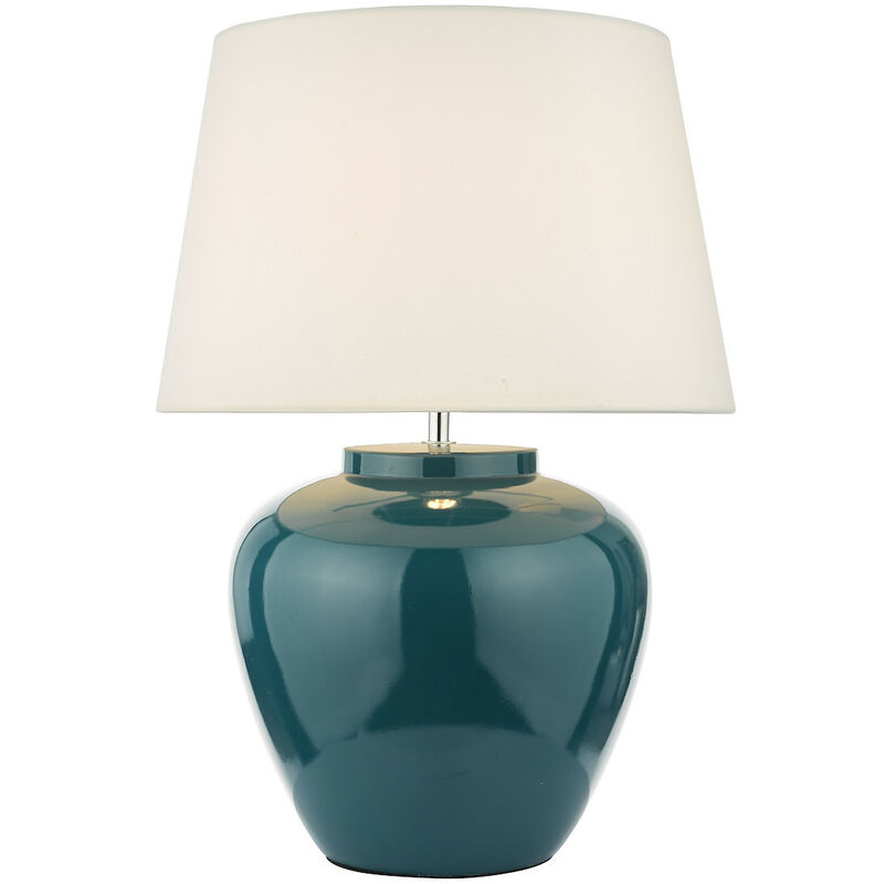 Dar Ayla Lampada da tavolo in ceramica blu con paralume | Finitura: ceramica blu | Classificazione IP: IP20 | Altezza: 61 cm | Diametro: 40 cm | Tipo di lampada: E27 | N. di lampade: 1 | Lampadina inclusa: No | Peso: 3,18 kg | Potenza (massima): 60 W | Commutato: In Line Rocker