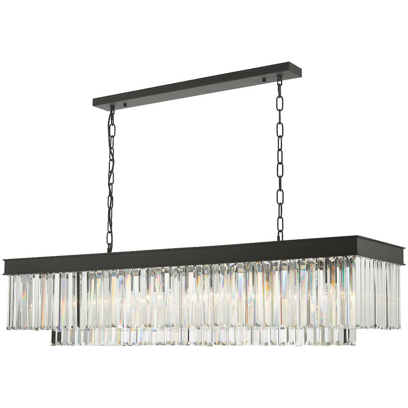 Dar Celeus Plafoniera a sospensione a 6 barre luminose antracite e cristallo | Finitura: nero opaco, cristallo | Classificazione IP: IP20 | Altezza: 30cm | Altezza minima: 40 cm | Altezza massima: 185 cm | Larghezza: 120 cm | Profondità: 32 cm | Tipo di lampada: E14 | N. di lampade: 6 | Lampadina inclusa: No | Peso: 21,6 kg | Potenza (massima): 40W