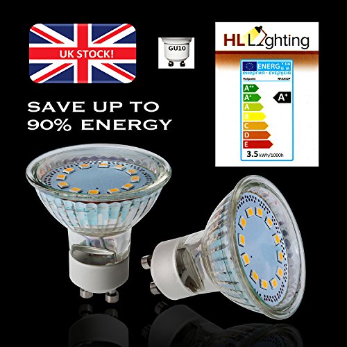 HL Lighting confezione da 5 lampadine a LED da 3,5 W, 300LM, luce bianca calda, 220 - 240 V equivalente ad alogena 30 W, lampadina di ricambio GU10, angolo di diffusione: 120°, illuminazione a binario, classe energetica: A +, 3000 K, ideale per qualsiasi ambiente, abitazioni, uffici e esterni, illuminazione sicura per famiglie con bambini., Warm White, GU10, 3.50 wattsW 240.00 voltsV