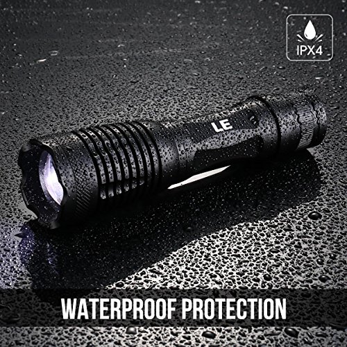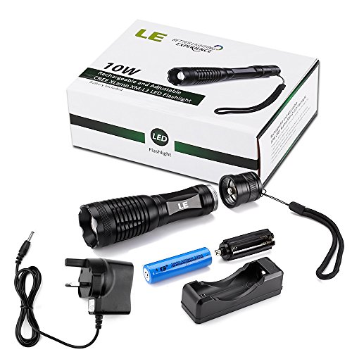 Lighting Ever - Torcia a LED di tipo XLamp XM-L2, con messa a fuoco e zoom regolabile, 5 modalità di luce, con batteria di tipo 18650 ricaricabile e caricatore inclusi, idrorepellente e adatta per campeggio, potenza 10 W, 1000 lm