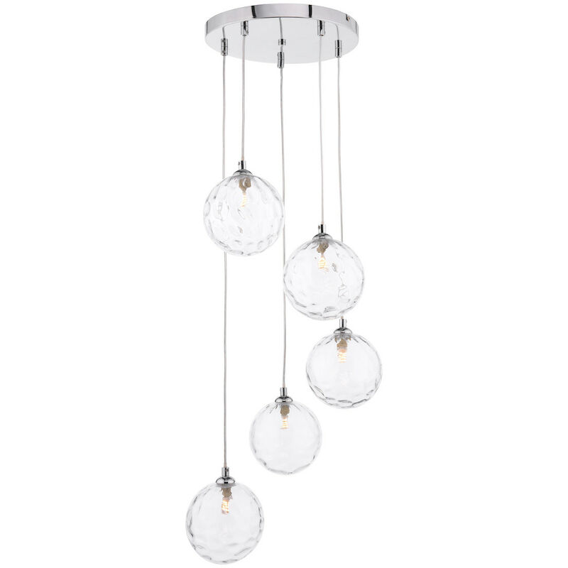 Dar Federico Plafoniera a sospensione a 5 luci, cromatura lucida, trasparente con fossette, vetro da 150 mm | Finitura: cromo lucido, vetro stampato | Classificazione IP: IP20 | Altezza: 165 cm | Diametro: 35 cm | Tipo di lampada: G9 | N. di lampade: 5 | Lampadina inclusa: No | Peso: 2,16 kg | Potenza (massima): 40W