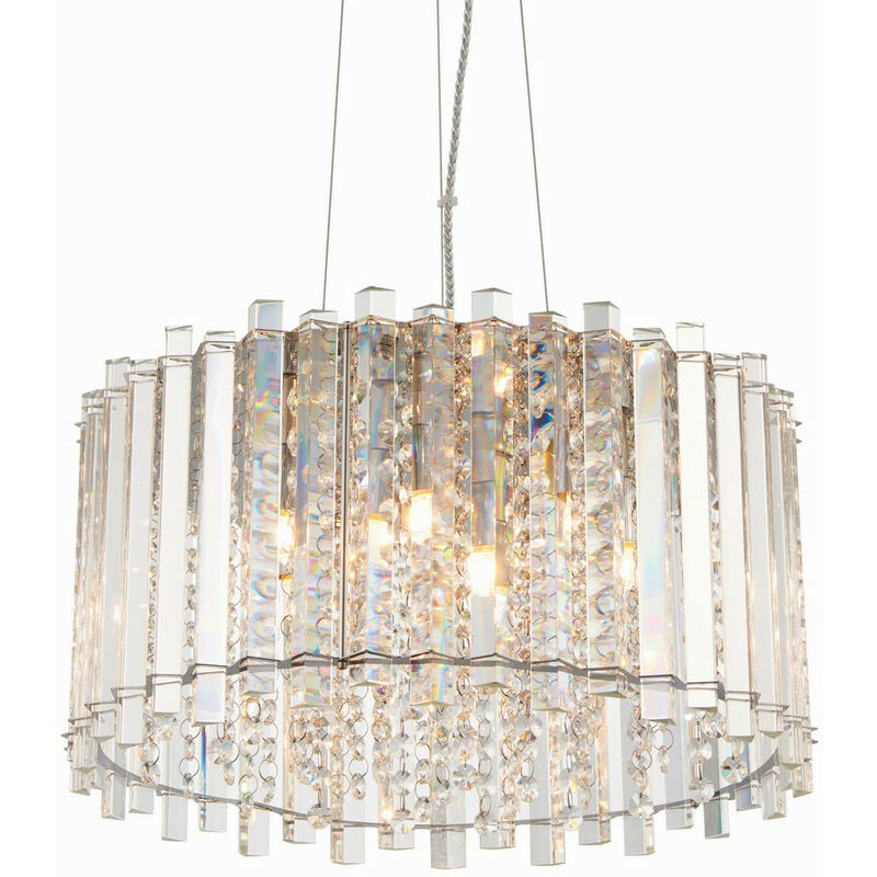 Endon Lighting Hanna - Pendente Cristallo Trasparente (K5) Vetro e Effetto Cromato Piatto 5 Luci Dimmerabili IP20 - G9 | Finitura: cristallo trasparente (K5) e lastra effetto cromo | Materiale: acciaio e cristallo | Classificazione IP: IP20 | Altezza min (cm): 55 | Altezza massima (cm): 147 | Diametro (cm): 41 | Tipo di lampada: G9 | Numero di lampade: 5 | Potenza: 28W | Lampadina inclusa: No | Dimmerabile | Kelvin (K): 2800 | Lumen (L): 370 | Peso (kg): 5,09