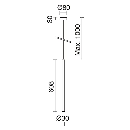 Dimensioni: vaso o base soffitto Ø8 cm x altezza 3 cm. Schermo: Ø3 cm x altezza 60,8 cm. Lunghezza cavo max. 100 cm. Ha un indice di protezione IP40 adatto per uso interno.