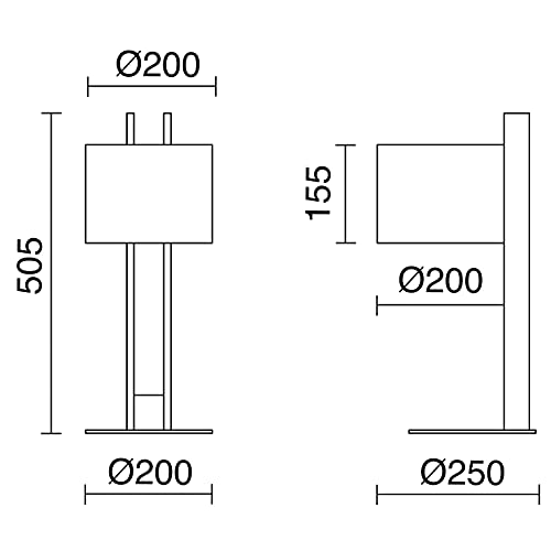 Dimensioni: base Ø20 cm. Altezza 50,5 cm x larghezza Ø20 cm x profondità 25 cm. Display: Ø20 x 15,5 cm. Lunghezza cavo 2 m. Interruttore ON/OFF sul cavo. Ci sono le versioni applique da parete e piede del salone.
