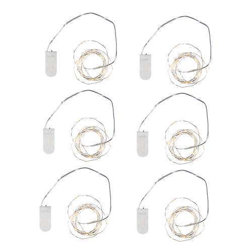 Lights4fun Set di 6 catene di luci a LED micro luce bianca calda con timer, funzionamento a batteria, per interni