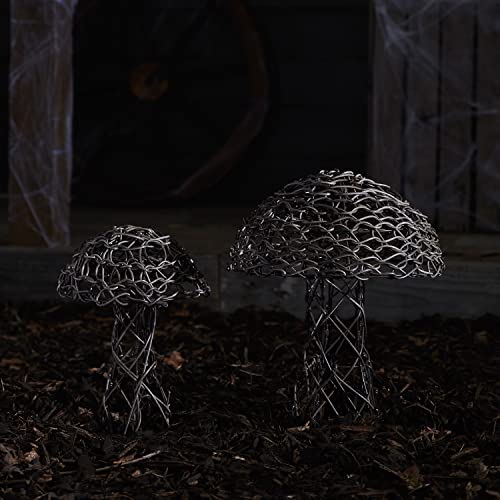 Questo duo di funghi luminosi in vimini luminosi misura 40 e 30cm di altezza