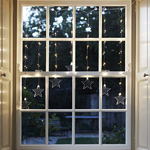 Lights4fun - Tenda di 47 Micro LED Bianco Caldo per Interni su Cavo Metallico con Stelle