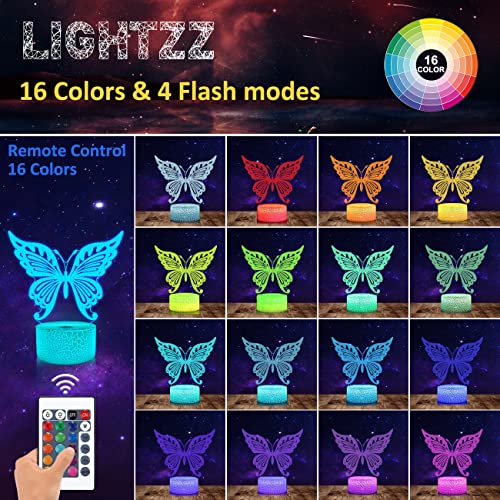 Lightzz Farfalla regalo per bambine e ragazze, lampada 3D a LED con illusione notturna con telecomando, 16 colori che cambiano (farfalla)