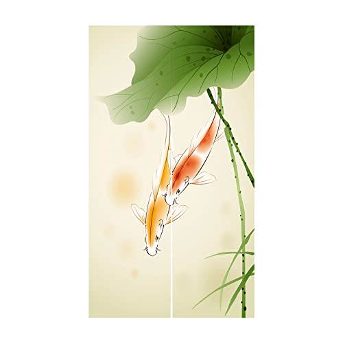 LIGICKY Tenda per porte in stile cinese giapponese Noren in lino Koi Fish Lotus Leaf stampato asiatico trattamento finestra appeso porta tappezzeria per la privacy, decorazione per la casa