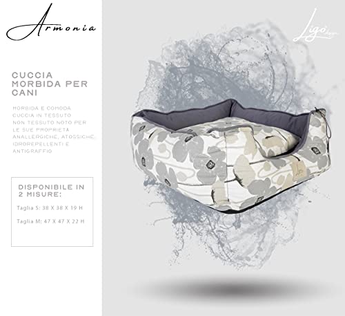 Ligo Armonia - Morbida e comoda cuccia per cani in tessuto Digitale completamente sfoderabile e lavabile. Idrorepellente e antigraffio. Realizzata a mano in Italia. (S, PAPAVERI GRIGI)