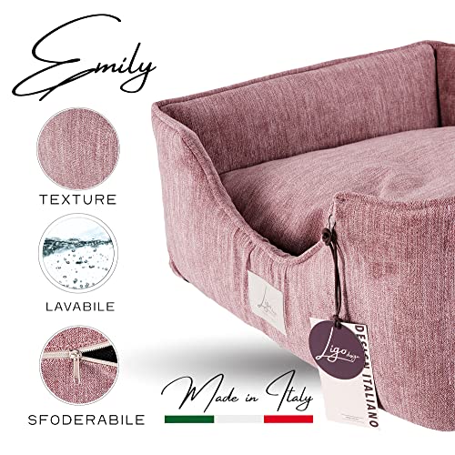 Ligo EMILY- Cuccia per cani in tessuto di alta qualità con doppio cuscino. Lettino materasso per cane interamente Sfoderabile e lavabile. Cuccia artigianale italiana. (S | 55 X 45 cm, ROSA)
