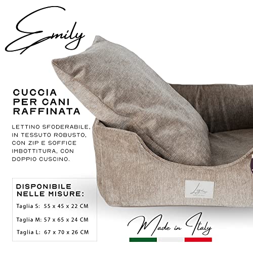 Ligo EMILY- Cuccia per cani in tessuto di alta qualità con doppio cuscino. Lettino materasso per cane interamente Sfoderabile e lavabile. Cuccia artigianale italiana. (L | 67 X 70 cm, BEIGE)