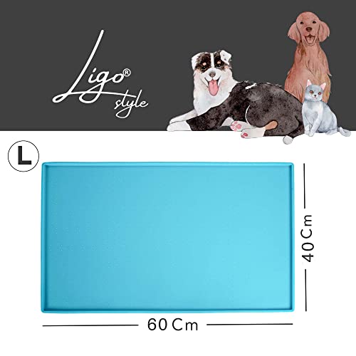 Ligo -Tappetino sottociotola in silicone per gatti e cani, tappetino sotto ciotola ANTISCIVOLO, protezione del pavimento. (L-BLU)