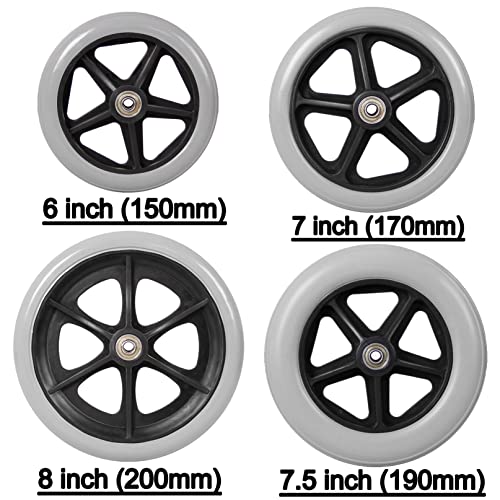 LIGUOYI 2 Pezzi Rotelle per Sedie A Rotelle, Ruote in Gomma per Sedie A Rotelle, Ruote Solido Antiscivolo Diametro 6, 7, 8 Pollici, Ruote Anteriori per Sedia A Rotelle Disabili, Facile da Installare