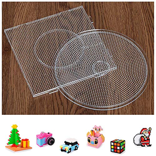 LIHAO pegboard per Perline a Fusione, Accessorio per Perline da Stirare 2.6mm, Set di 3 Pezzi per Il Tempo Libero Creativo-2 Piazza 1 Tondo