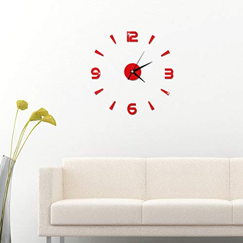 Liineparalle Moda Specchio Acrilico Orologio da Parete Adesivo 3D Grande Orologio Decor Orologio da Parete Fai da Te Casa Moderna Camera da Letto Ufficio Camera Decor Regali per Le Vacanze(Rosso)