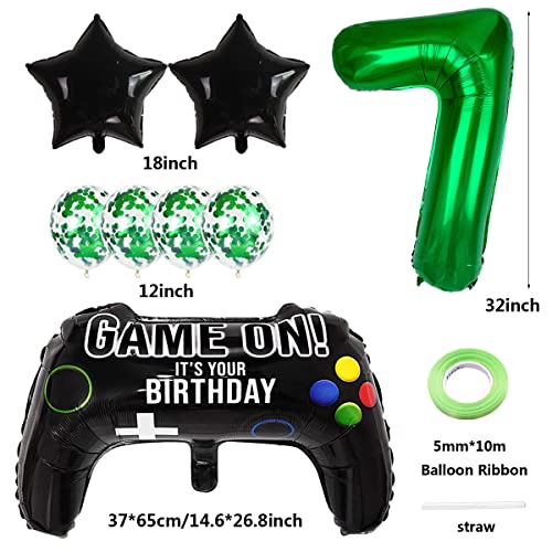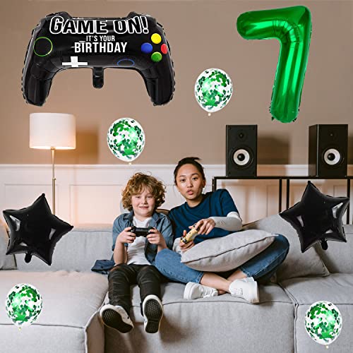 Liitata Videogioco 7° compleanno, decorazione per ragazzi giocatori, compleanno festa numero 7 palloncini in pellicola, verde, grande controllore stella palloncino per bambini ragazzi compleanni feste