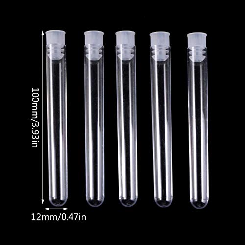 Lijun 50 Pezzi/Pacco 12x100mm provette Trasparenti da Laboratorio in plastica Trasparente con provette da Laboratorio con Tappo a Pressione