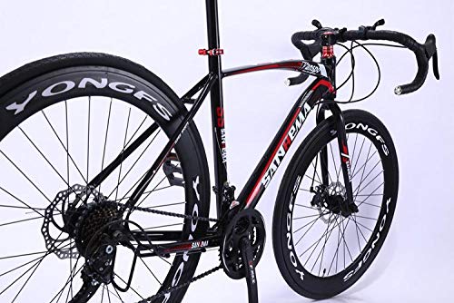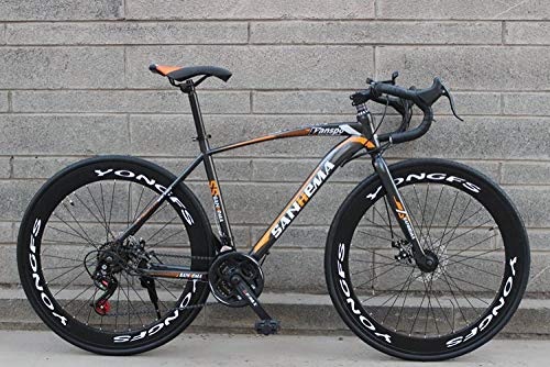 LIKEJJ Bici da Strada per Adulti, Bici da Corsa da Uomo con Doppio Freno a Disco, Bicicletta da Strada con Telaio in Acciaio ad Alto tenore di Carbonio, Bici da Città 700c , 21 velocità-Arancia Nera