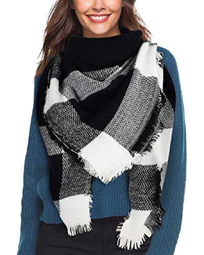 Likela Sciarpa Donna Scialle Inverno in Cashmere Scozzese Quadri Spesso Morbido e Confortevole per Scarf Caldi Wrap Caldo Coperta con Nappe (Nero & Bianca)