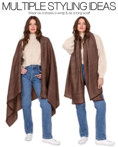 Sicuro per pelli sensibili: questi scialli da donna sono tessuti in lana merino certificata Woolmark al 100% che è naturalmente priva di allergeni, ha proprietà termiche per tenerti al caldo ed è stato tinto senza azoici senza irritanti.