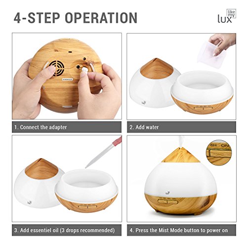 Likemylux - Diffusore di Aromi da 300 ml, diffusore oli essenziali e umidificatore per aromaterapia in legno con venature, illuminazione LED a 7 colori, colore marrone