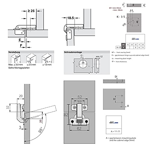 Questa cerniera può essere fermata in qualsiasi posizione tra l'angolo di apertura della porta di 45-95 gradi. Se l'angolo di apertura è inferiore a 45 gradi, la cerniera può chiudersi automaticamente