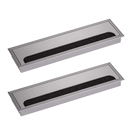 LIKERAINY Passacavo per Scrivania Rettangolare 80x 280mm Pressacavo Tappo Passacavi per Tavolo da Ufficio Mobili per la Casa CAVO in Alluminio Argento Anodizzato Quadrato 2 Pezzi