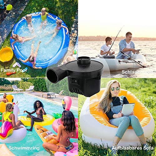 Likey elettrica aria pompa, Pompa elettrica 2 in 1 Inflate e Deflate AC 220 V/DC 12 V, 3 adattatori per aria materassi, Materasso, Barca, letto, cuscino, gonfiabili Nuoto Anello.