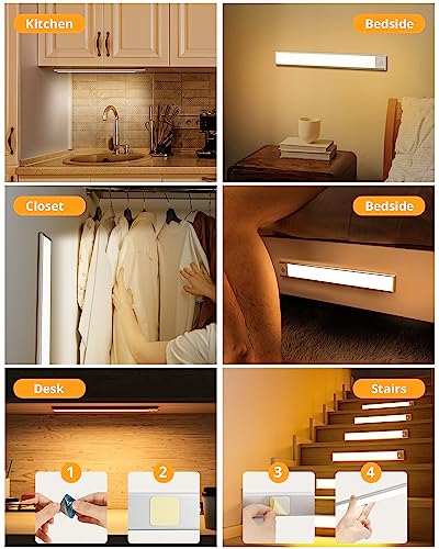 Likohee Luce Armadio LED con Sensore di Movimento 54LED, lampada led Ricaricabile Senza Fili, Lampada Notturna Magnetico3 Modalità 30cm Senza Fili Luci Emergenza Per Cucina, Scale, Corridoio- 2Pezzi