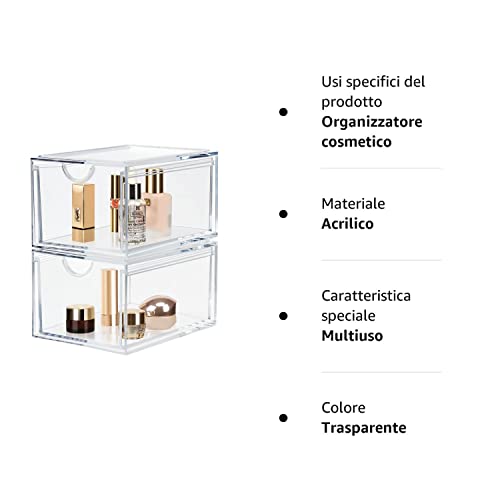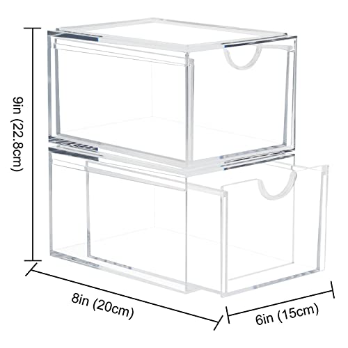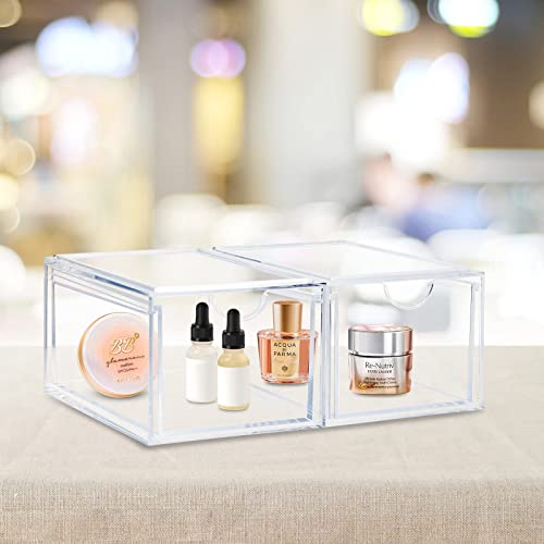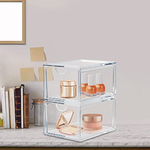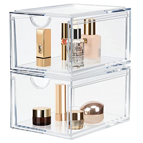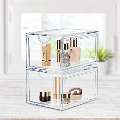 LileZbox Cassetti impilabili per cosmetici, contenitori in plastica acrilica trasparente per vanità, organizzazione e conservazione della casa, cura della pelle, bancone del bagno o comò - Set di 2