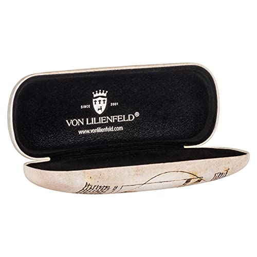 IL PARTICOLARE CHE FA LA DIFFERENZA: Nella parte interna è stampato il prezioso logo VON LILIENFELD in argento metallizzato. Ogni custodia è fornita con un pregiato panno per la pulizia degli occhiali in microfibra, su cui è stampato a colori lo stesso motivo della custodia. Formato del panno: 18 x 14,5 cm.
