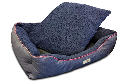 Lilly Cuccia per Cani 50x40 cm in Jeans e Pelliccia Sintetica, Cuccia Antibatterica e Anti-Odore (T50)